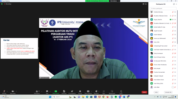 Pelatihan Pendamping Peningkatan Budaya Mutu Perguruann Tinggi (Auditor AMI-PT) 15-17 Februari 2024